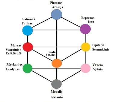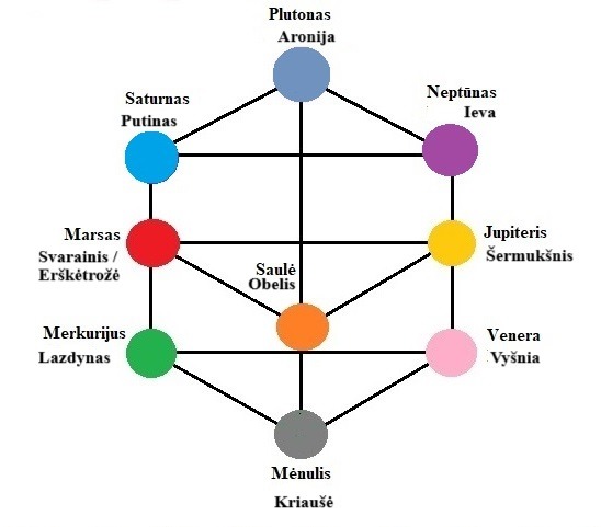 9. Liepa (žemiausiai stovintis dešinėje teigiamoje linijoje, Veneros medis)