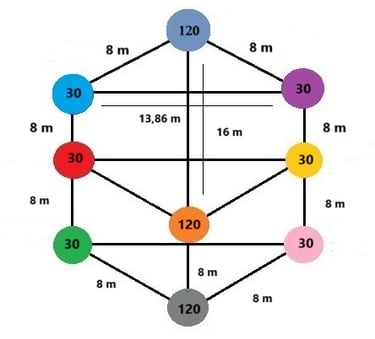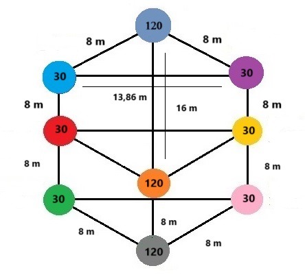 Tokį centrą juosia dviem eilėm pasodintas medžių kvadratas. Vidinio kvadrato medžiai gali būti susodinti glaudžiau, palaikant tarp jų po 4 metrus, o išorinio kvadrato medžiai gali būti eilėje sodinami kas 6 metrus. Ateityje medžiai susijungs savo šakomis. Visgi, jei sodinsime didžiuosius medžius, pvz., ąžuolus, atstumai gali būti laikomi ir didesni (pvz., 5 ir 7 metai).